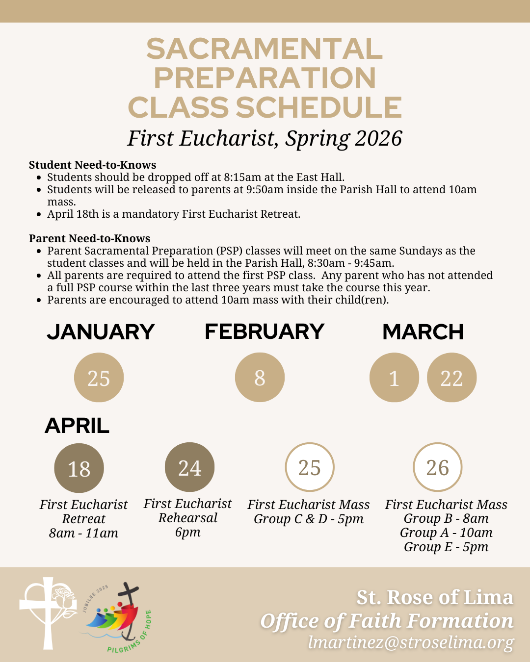 Welcome to Faith Formation at St. Rose of Lima. We are committed to nurturing spiritual growth for individuals of all ages.